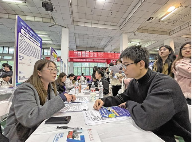 10月30日,在西安邮电大学,一场数字信息技术专场招聘会吸引了众多高校毕业生前来求职。