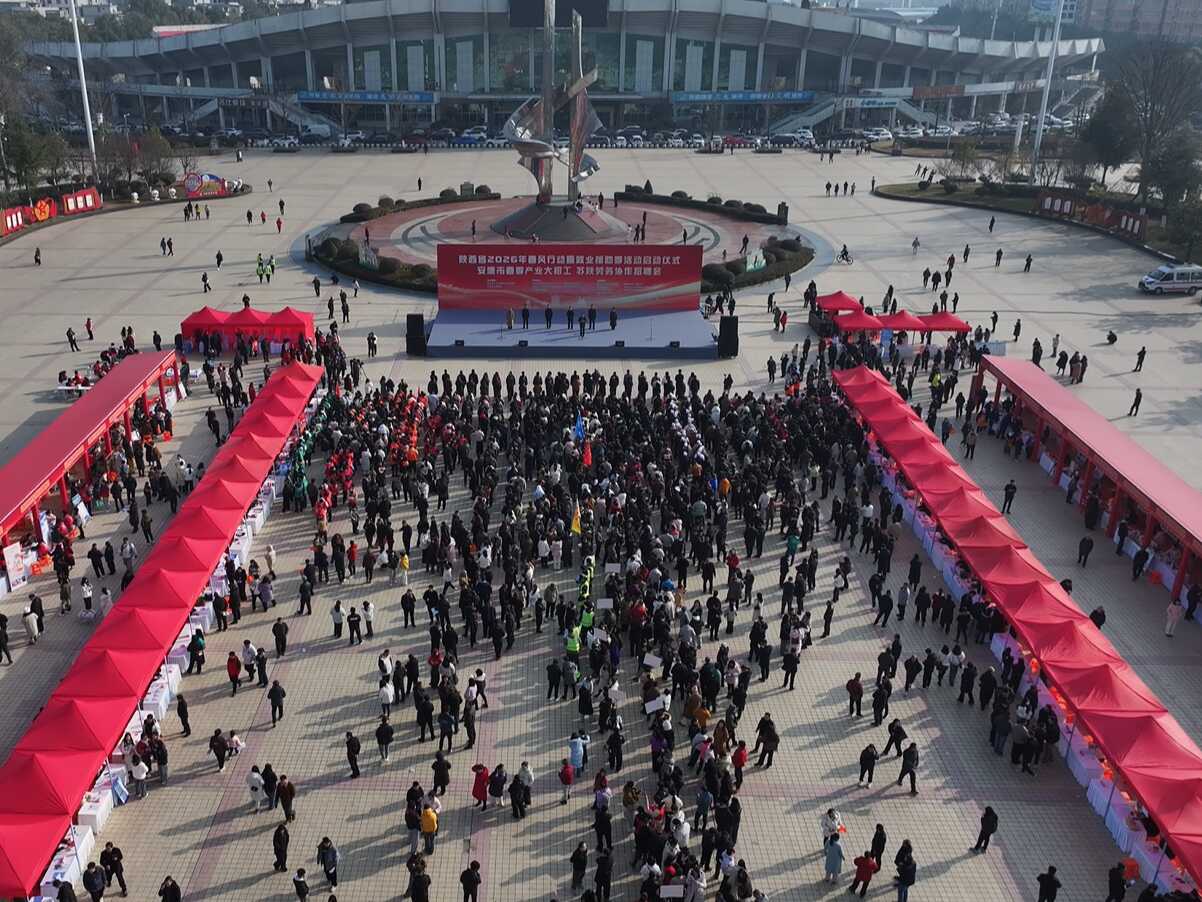 2月2日,以“春风送岗促就业 真情相助暖民心”为主题的陕西省2026年春风行动暨就业援助季活动启动仪式在安康市金州广场举行,安康市春季产业大招工、苏陕劳务协作招聘会在现场同步开展。