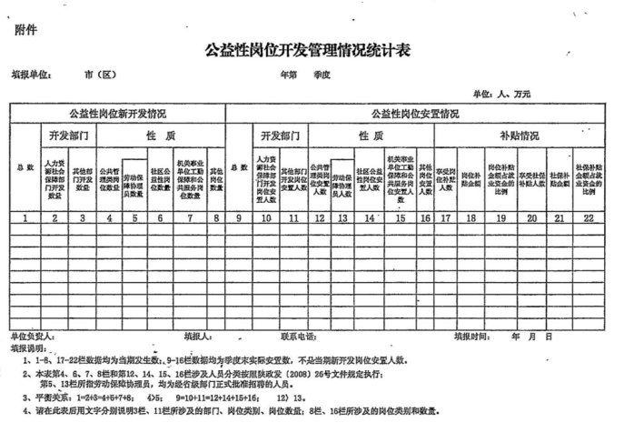 第四十一条 建立报表制度。 各市(区)要于每季度结束后5个工作日内上报公益性岗位开发管理情况统计表(表样见附件)。