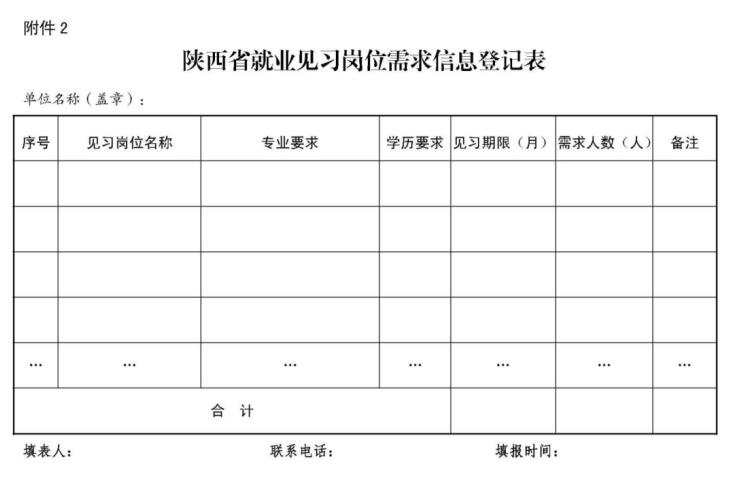 (二)陕西省就业见习岗位需求信息登记表(附件2);