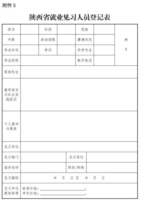 第十八条 登记信息。有见习意愿的毕业生在当地公共就业人才服务机构领取陕西省就业见习人员登记表(以下简称登记表,附件5),或登录公共就业人才服务机构官方网站下载登记表,填写相关信息。