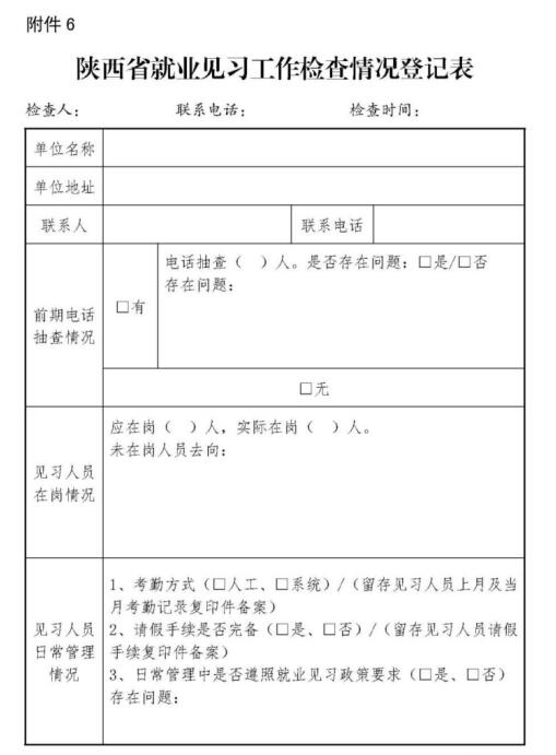 (三)公共就业人才服务机构对见习单位提交的见习补贴申请进行审核,全面审查申报材料的完备性、见习单位和见习人员的合规性、上岗见习和见习补贴发放的真实性等情况,结合日常检查情况,填写陕西省就业见习工作检查情况登记表(附件6),提出审核意见;